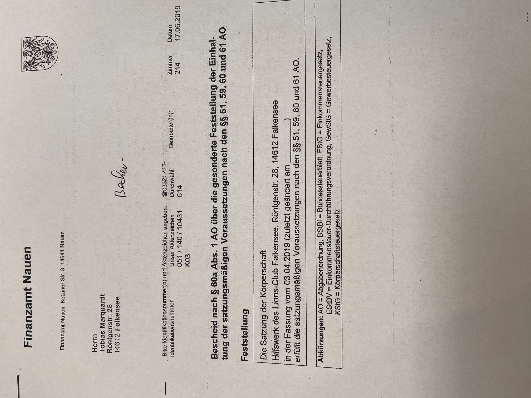 Freistellungsbescheid des Hilfswerk des Lions Club Falkensee e.V. (764 KB)